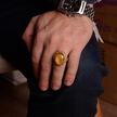 925 Ayar Gümüş Doğal Kehribar Taşlı Erkek Yüzük - El Yapımı Vintage Tarzı Takı Gümüş