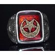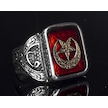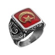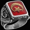925 Ayar Gümüş Erkek Yüzük - Ay Ve Yıldız İle Oluşturulmuş Granat Taşı Gümüş