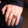 925 Ayar Gümüş Erkek Yüzük Doğal Yakut Taşı - Şık Kırmızı Taş Yüzük Gümüş