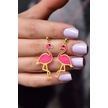 925 Ayar Gümüş Gold Kaplama Parlayan Rüya Serisi Tasarım Ebruli Cam Boyalı Flamingo Küpe
