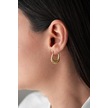 925 Ayar Gümüş Gold Rengi Çizgili Oval Tasarım Şarnel Küpe Gold