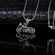 925 Ayar Gümüş Kuru Kafa Motorsiklet Motifli Kolye