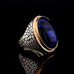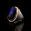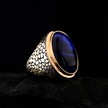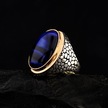 925 Ayar Gümüş Mavi Kaplan Gözü Taşlı Duvar Desenli Erkek Yüzük Çok Renkli