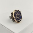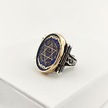925 Ayar Gümüş Mavi Mineli Motifli Mührü Süleyman Erkek Yüzük Silver
