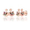 925 ayar Gümüş Mix Zirkon Taşlı Rose Kaplama Kuğu Modeli küpe