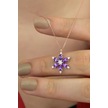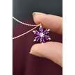 925 Ayar Gümüş Mor Taşlı Kamelya Çiçeği Kadın Kolye