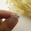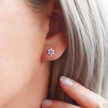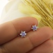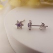 925 Ayar Gümüş Mor Taşlı Minimal Lotus Küpe Gümüş