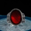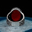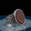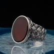 925 Ayar Gümüş Oval Kırmızı Akik Taşlı Örgü Desenli Erkek Yüzük - 554220170