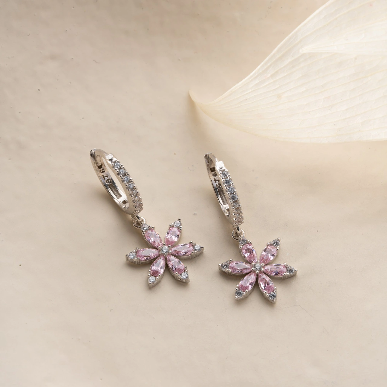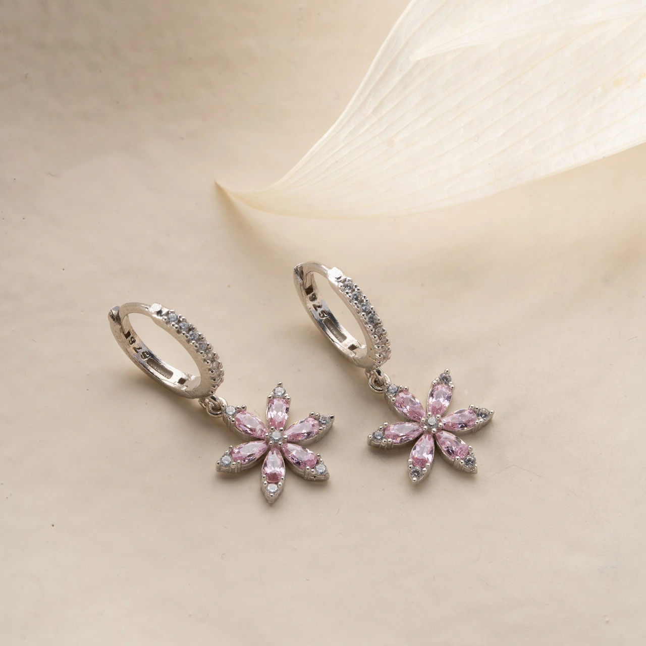 925 Ayar Gümüş Pembe Taşlı Çiçek Küpe Altın