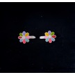 925 Ayar Gümüş Renkli Mineli Yapraklı Çiçekli Gümüş Çocuk Küpesi