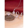 925 Ayar Gümüş Rodyumlu Pembe Taşlı Kalp Bayan Takı Seti -8227 Gümüş