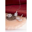 925 Ayar Gümüş Rodyumlu Triple Zirkon Süslemeli Baget Bayan Takı Seti -8244 Gümüş