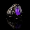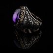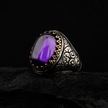 925 Ayar Gümüş Sarmaşık Desenli Ametist Taşlı Erkek Yüzük Çok Renkli