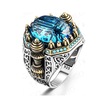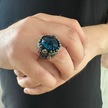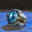 925 Ayar Gümüş Şehzade Kasa Mavi Zirkon Taşlı Usta İşi Erkek Yüzük Gümüş