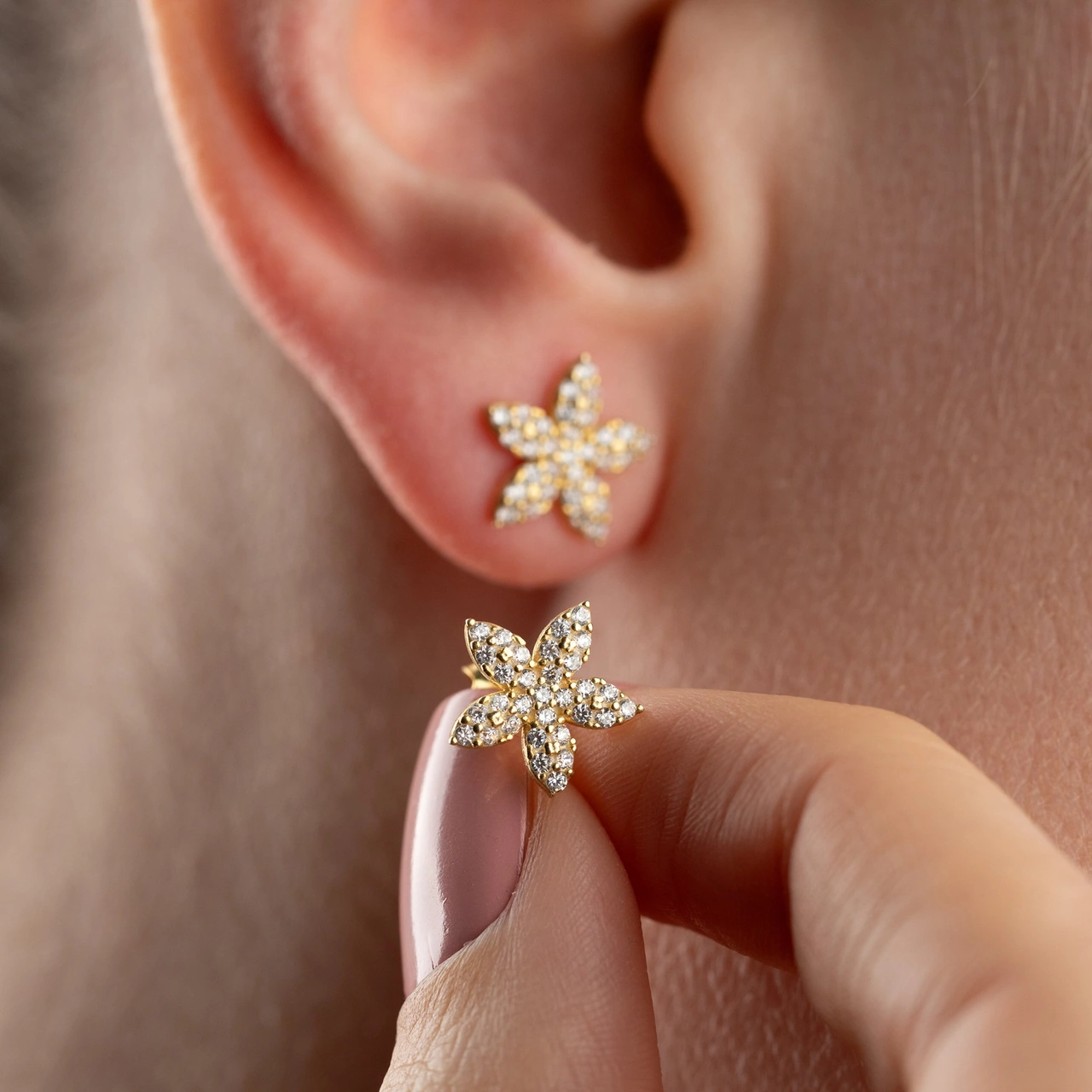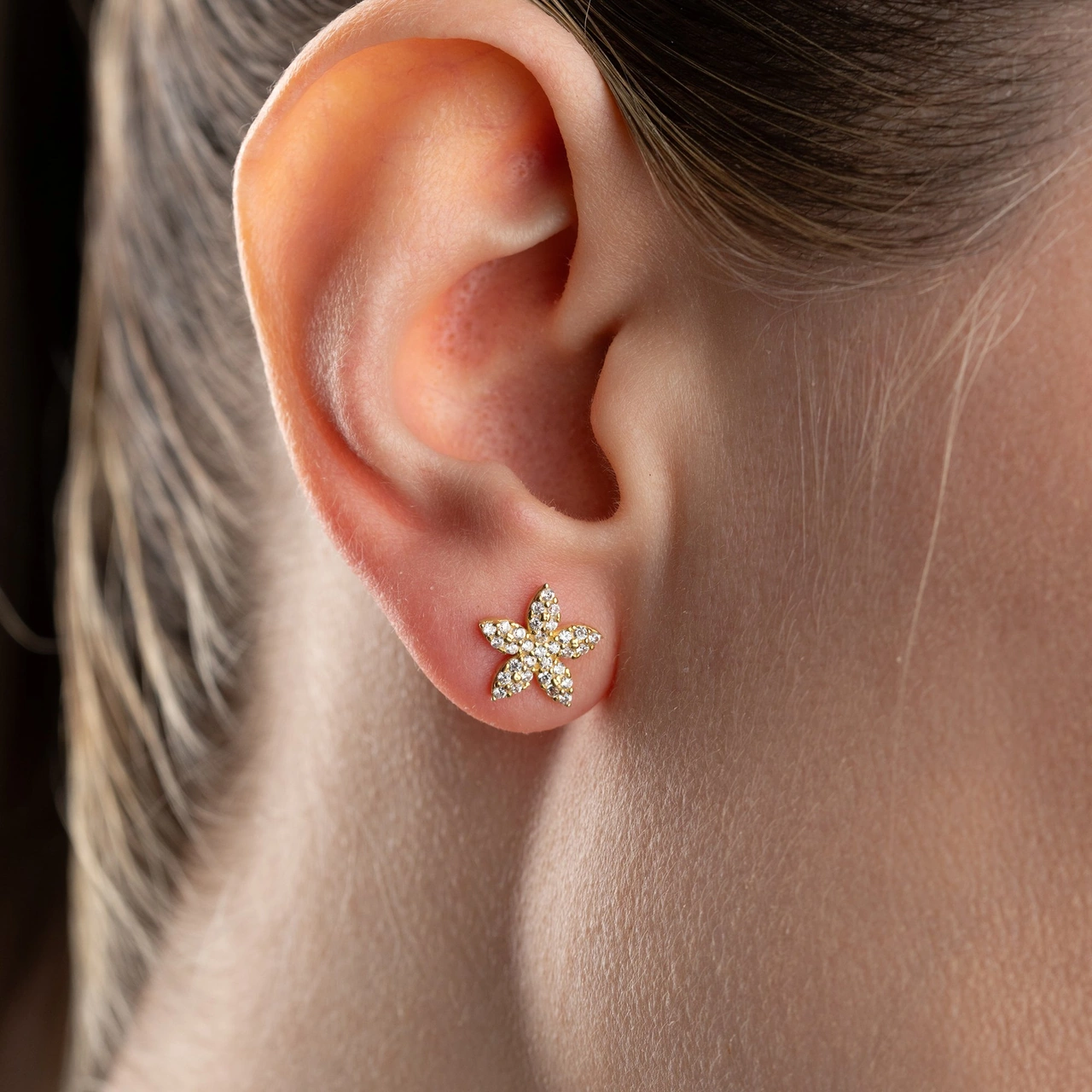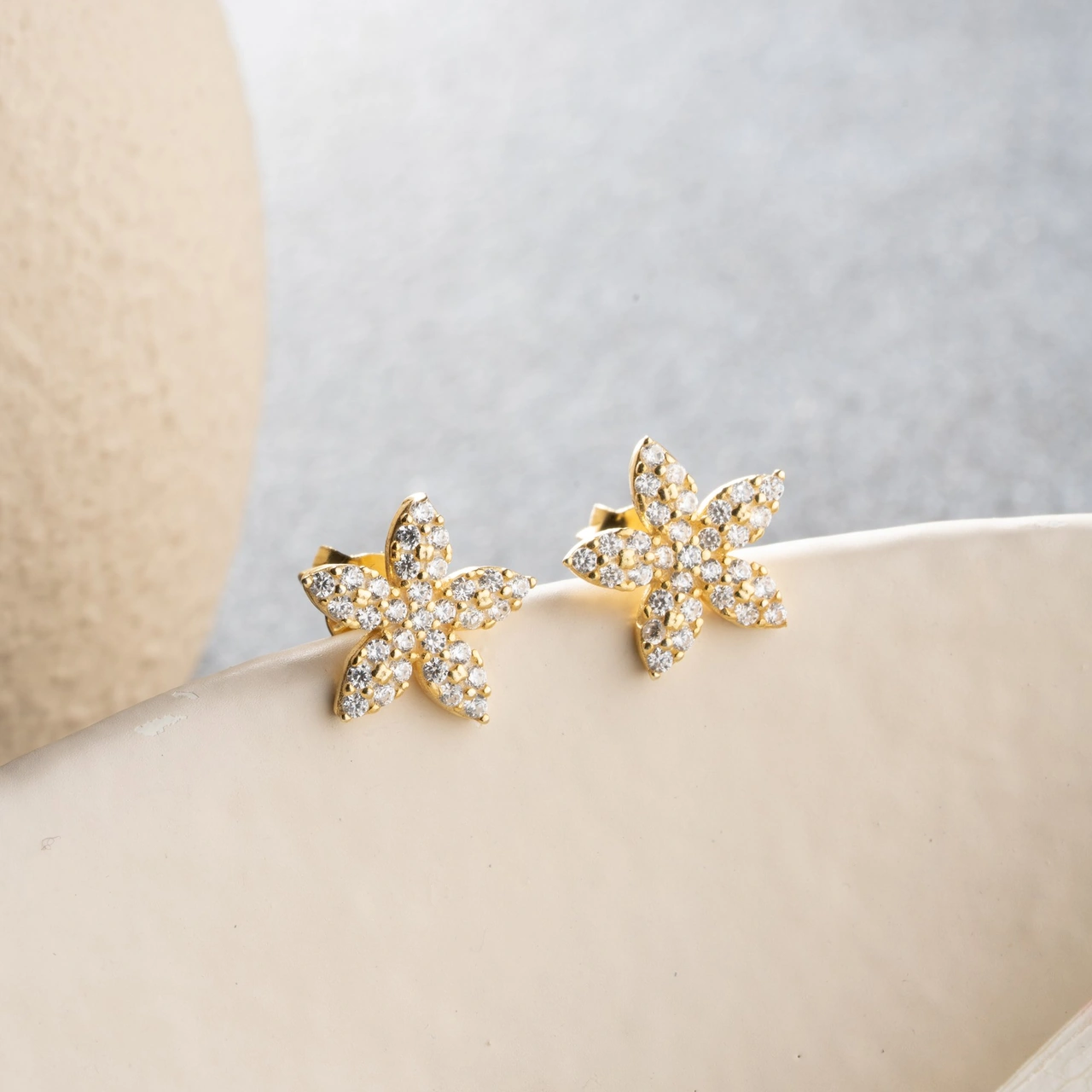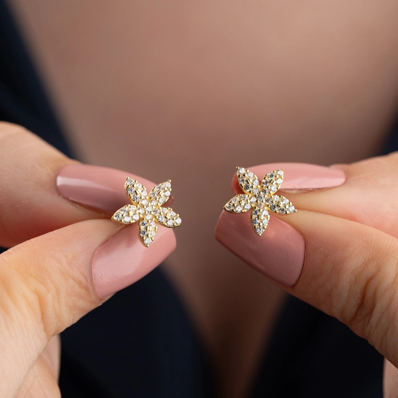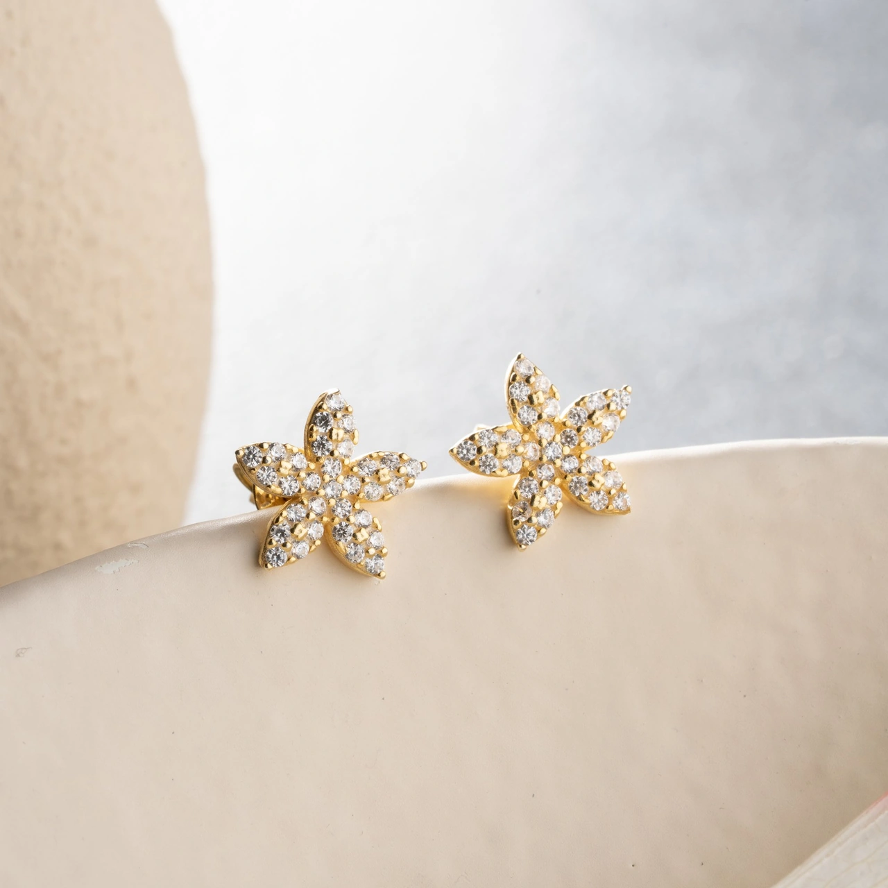 925 Ayar Gümüş Taşlı Minimal Çiçek Küpe Altın
