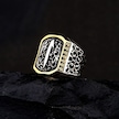 925 Ayar Gümüş Telkari Detaylı Elif İşlemeli Erkek Yüzük Çok Renkli