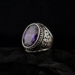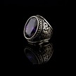 925 Ayar Gümüş Yaprak İşlemeli Ametist Taşlı Erkek Yüzük Çok Renkli