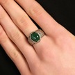 925 Ayar Gümüş Yeşil Akik Taşlı Işlemeli Erkek Yüzük