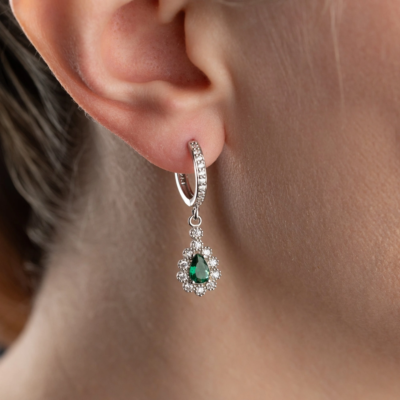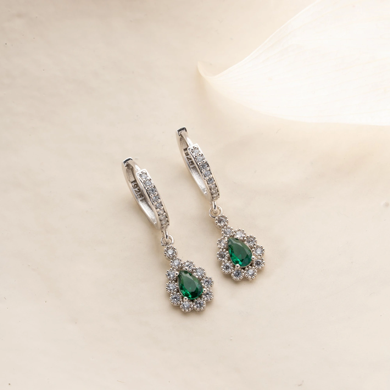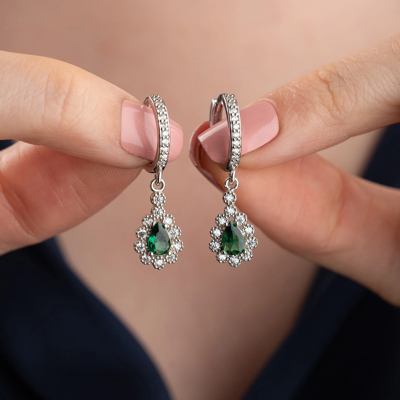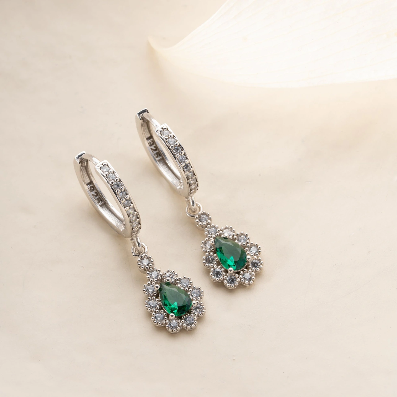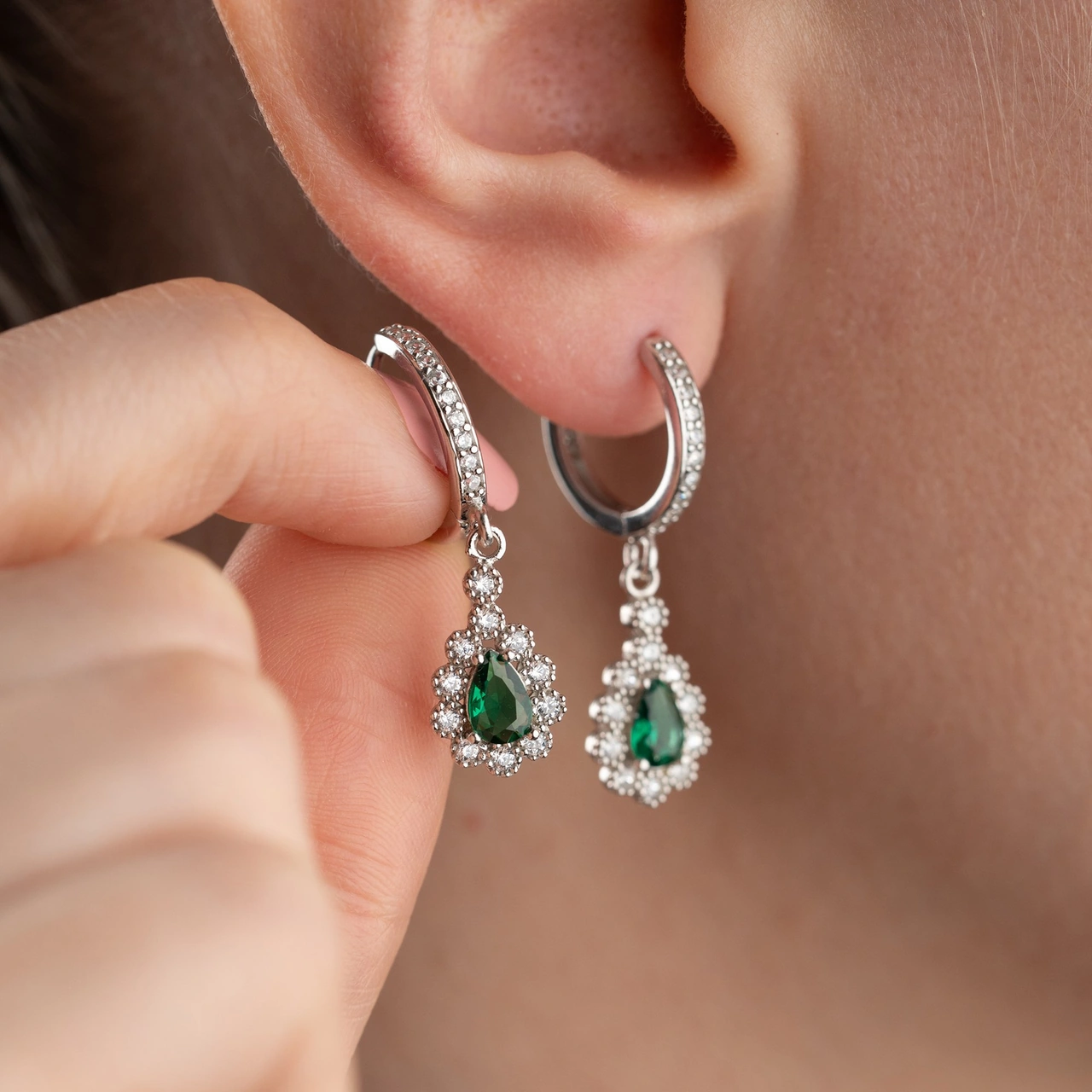 925 Ayar Gümüş Yeşil Damla Taşlı Küpe Gümüş