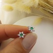 Gümüş Rose Yeşil Taşlı Yıldız Yonca Ve Palmiye Kombin Üçlü Küpe Seti