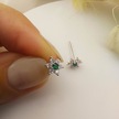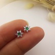 925 Ayar Gümüş Yeşil Taşlı Minimal Lotus Küpe Gümüş