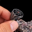 Agakulche Gümüş Erkek Kırmızı Taşlı Damask Desen Yüzük Gümüş