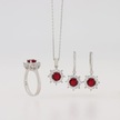 925 Ayar Gümüş Yuvarlak Kırmızı Taşlı Anturaj Set