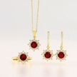 925 Ayar Gümüş Yuvarlak Kırmızı Taşlı Gold Anturaj Gümüş Set