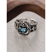 925 Ayar Gümüş Zirkon Mavi Taşlı Yüzük