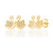 925 ayar Gümüş Zirkon Taşlı 14k Altın Kaplama Kuğu Modeli küpe