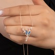 925 Ayar Gümüş Zirkon Taşlı Mavi Daldaki Kelebek Kolye