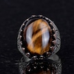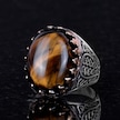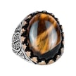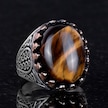 925 Ayar Katı Gümüş Erkek Yüzük - Doğal Taşlarla El Yapımı Şıklık Kaplan Göz Taşı Gümüş
