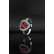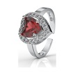 925 Ayar Lal Taşlı Rodyum Pırlanta Işıltılı Kalp Ayarlanabilir Gümüş Yüzük Rr10032 Gümüş