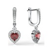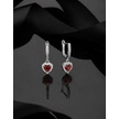 925 Ayar Lal Taşlı Rodyum Pırlanta Işıltılı Sallantılı Kalp Gümüş Küpe Gümüş