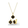 925 Ayar Oniks Taşlı Gold Van Cleef Yonca Kolye Küpe 2'li Gümüş Set-takım
