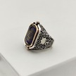 İpek Silver 925 Ayar Gümüş Sıkma Kehribar Taşlı Osmanlı Desenli Erkek Yüzük Apy144