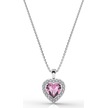 925 Ayar Pembe Taşlı Rodyum Pırlanta Görünümlü Kalp Gümüş Kolye Rn10308 Gümüş