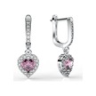 925 Ayar Pembe Taşlı Rodyum Pırlanta Işıltılı Sallantılı Kalp Gümüş Küpe Gümüş