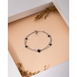 925 Ayar Rodyum Siyah Mineli İki Sıralı Yonca Charm Gümüş Bileklik Gümüş - Rodyum