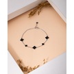 925 Ayar Rodyum Siyah Mineli Yonca Charm Gümüş Bileklik Rb10068