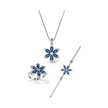 925 Ayar Safir Taşlı Rodyum Lotus Çiçeği 3'lü Gümüş Set Gümüş