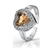925 Ayar Sitrin Taşlı Rodyum Pırlanta Işıltılı Kalp Ayarlanabilir Gümüş Yüzük Gümüş