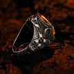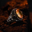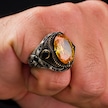 925 Ayar Sitrin Taşlı Ve Damla Zirkon Taşlı Gümüş Erkek Yüzüğü Gümüş