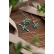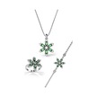 925 Ayar Zümrüt Taşlı Rodyum Lotus Çiçeği 3'lü Gümüş Set Gümüş