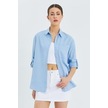 9942 Kadın Oxford Uzun Kol Basic Gömlek Bebe Mavi Bebe Mavi