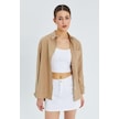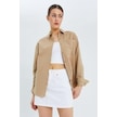 9942 Kadın Oxford Uzun Kol Basic Gömlek Bisküvi Bisküvi