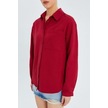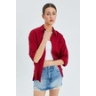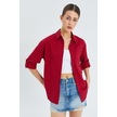 9942 Kadın Oxford Uzun Kol Basic Gömlek Bordo Bordo