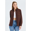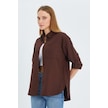 9942 Kadın Oxford Uzun Kol Basic Gömlek Kahve Kahve