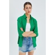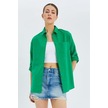 9942 Kadın Oxford Uzun Kol Basic Gömlek Yeşil Yeşil