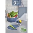 9'lu Mutfak Hazırlık Seti - Dik Standlı Kulplu Kesme Tahtası Karıştırma Kabı Süzgeç Limon Sıkacağı Mavi